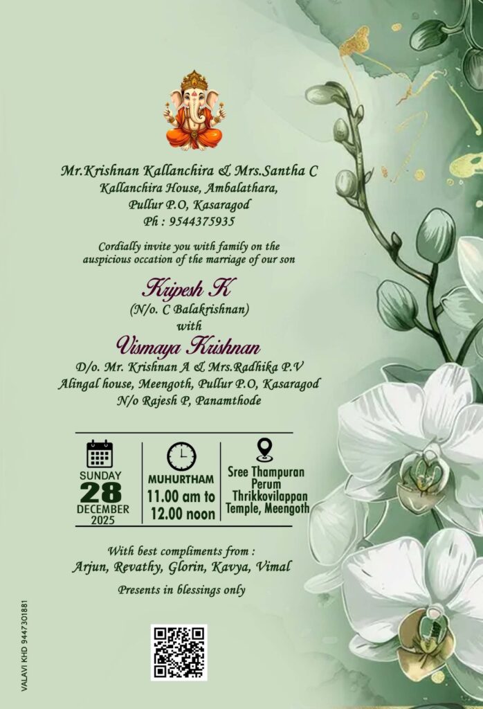home HAPPY WEDDING ameengoth@gmail.com 1 month ago (Last updated: 1 month ago) 0 comments About the Author ameengoth@gmail.com Administrator Visit Website View All Posts Post navigation Previous: വിവാഹംNext: HAPPY WEDDING Leave a Reply Cancel replyYour email address will not be published. Required fields are marked *Comment * Name * Email * Website Save my name, email, and website in this browser for the next time I comment. Related Stories home സ്മരണാഞ്ജലി ameengoth@gmail.com 1 week ago 0 1 minute read home എന്റെ മീങ്ങോത്ത് @ ഇന്ന് അറിയാൻ ameengoth@gmail.com 1 month ago 0 home പുതുവത്സരാശംസകൾ ameengoth@gmail.com 1 month ago 0